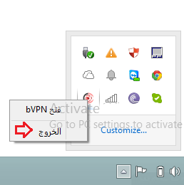 اضغط يمين الفأرة على أيقونة b.VPN ثم اختر "الخروج".