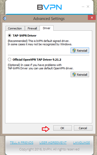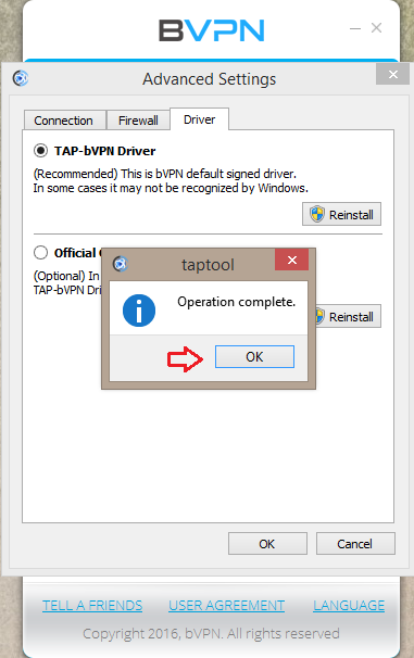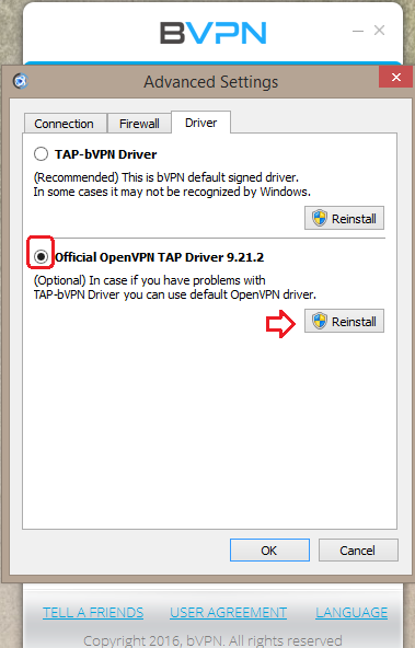 Below “TAP-bVPN Driver”, click “Reinstall”.