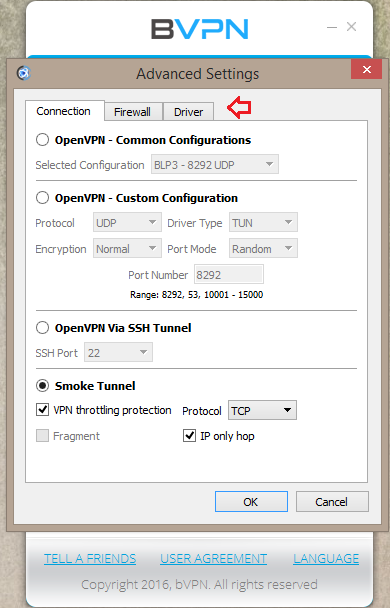 From b.VPN main window, click “Gear” button to open “Advanced Settings” window.
