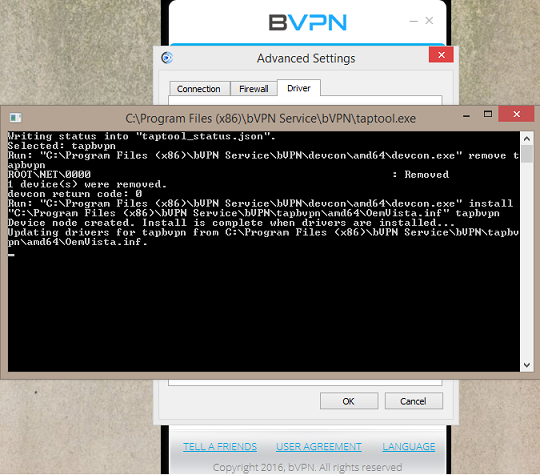 Wait while "TAP-bVPN Driver” is being reinstalled.