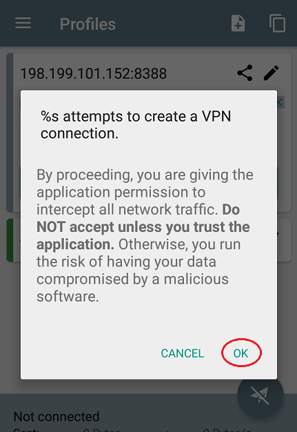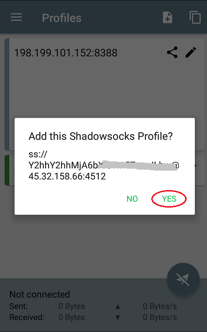A popup message will open in ShadowSocks. Tap “Yes”.
