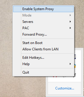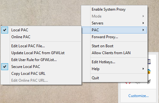 In the task bar, right click Shadowsocks icon. For “PAC”, check “Local PAC” and “Secure Local PAC”.