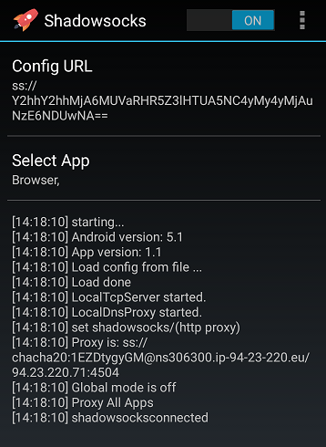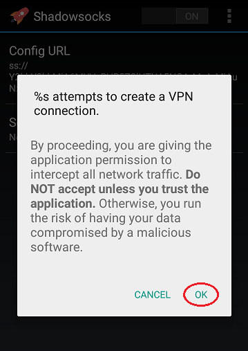 Open Shadowsocks client you’ve just installed. Tap “Config URL”.