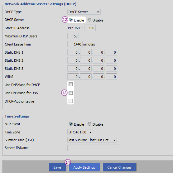 For “DHCP Server”, select “Enable” radio button.