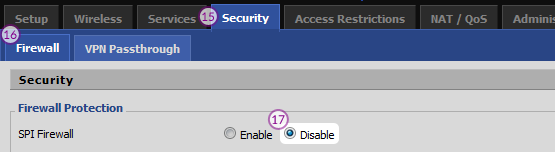 For “SPI Firewall” radio button, Select “Disable”.