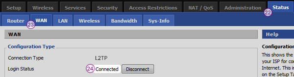 To check the connection status, go to “Status” tab, and then click on “WAN” tab, you’ll find: