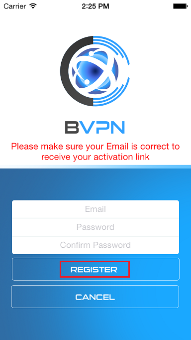 If you haven’t registered for a b.VPN account yet, tap on “Registration”.
