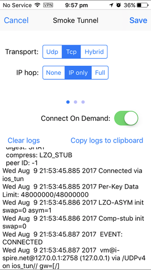 Tap “Settings” icon to choose from the available tunneling protocols.