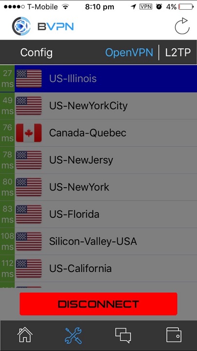 Tap “OpenVPN”. A list of availbale servers will appear with hints of ping reply next to each server.