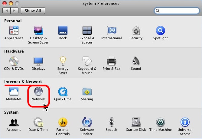 Click “Network” under “Internet & Network”.