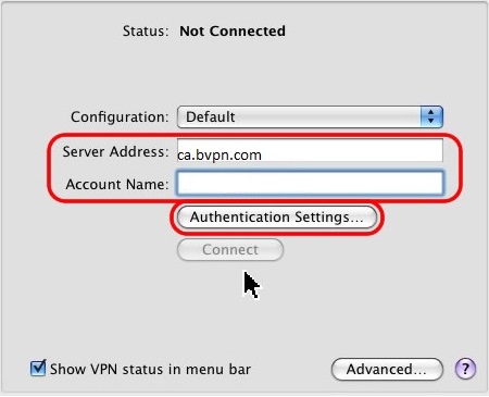 Type the server name in the "Server Address" field (e.g: ca.usa.bvpn.com).