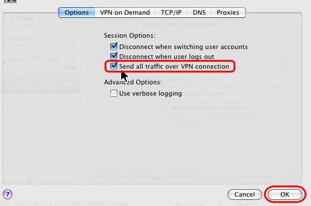 Check on “Send all traffic over VPN connection” box, then click "OK".