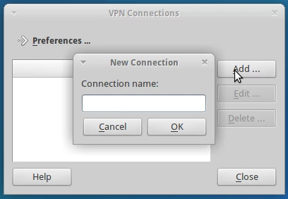 Click “Add” to start a new connection. Name your connection in the “Connection Name” box, then click “OK”. (It is recommended to choose the address of the VPN server you would like to use as the name for your connection, for example: ca.usa.bvpn.com)