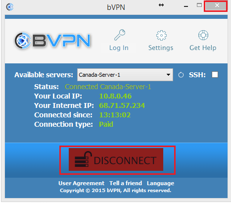 بر روی دکمه ی “Disconnect” و سپس “X” کلیک کنید.